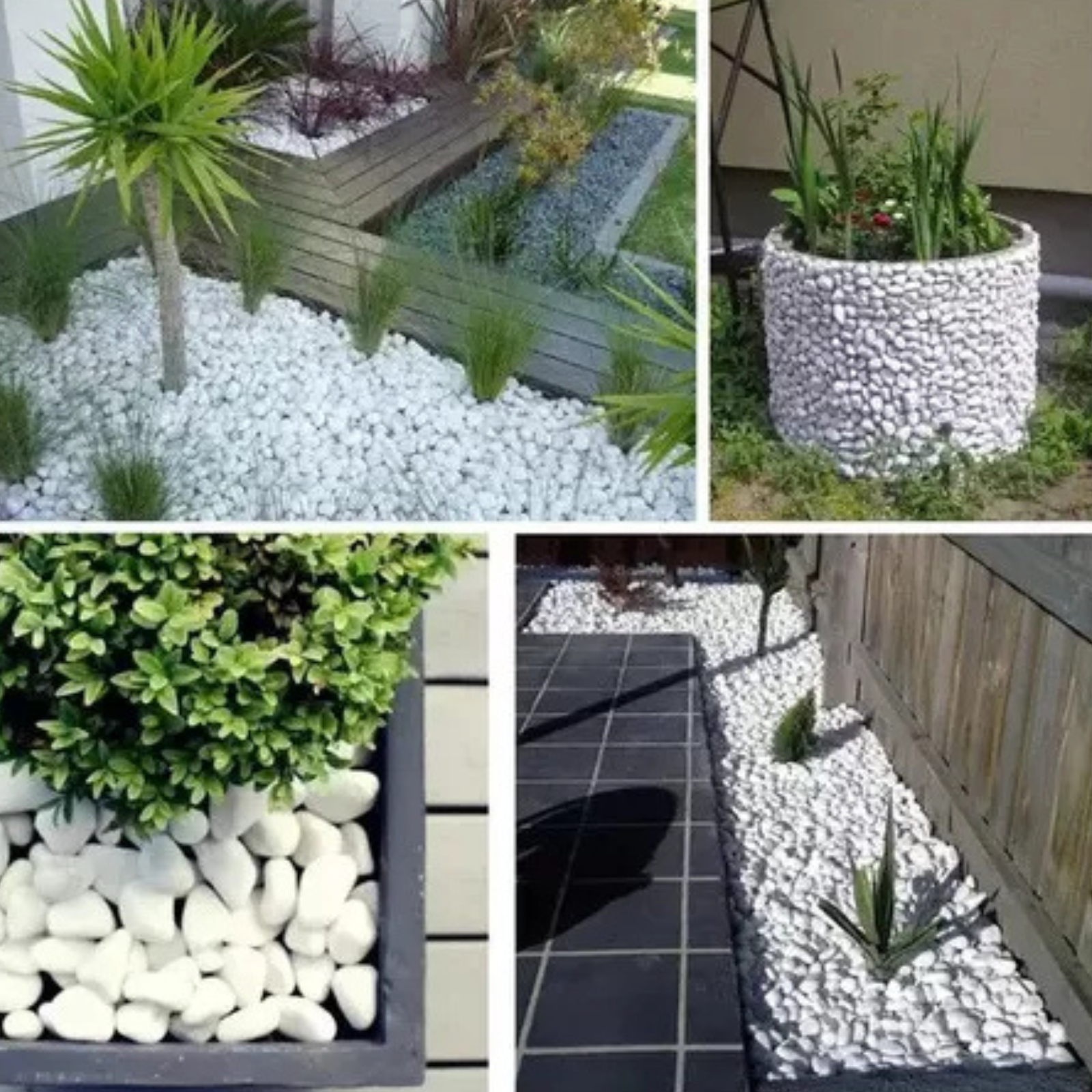 Um jardim com pedra branca, uma opção bem conhecida e muito utilizada é dolomita. A coloração BRANCA e formato arrendondado dá bastante destaque ao espaço decorado e a variedade de tamanhos é uma característica ótima para diferentes projetos.
